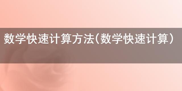 最近这段时间总有小伙伴问小编数学快速计算方法(数学快速计算)是什么,小编为此在网上搜寻了一些有关于数学快速计算方法(数学快速计算)的知识送给大家,希望能解答各位小伙伴的疑惑。