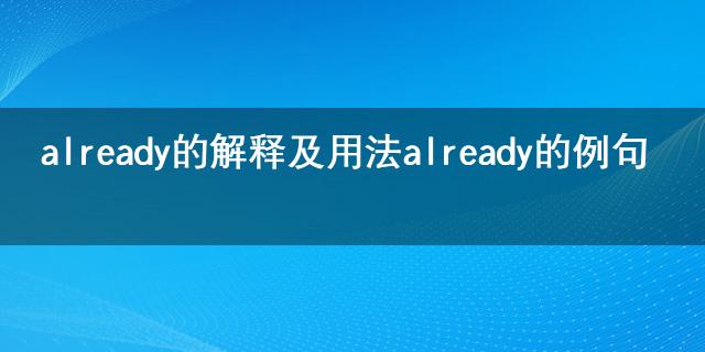 随着社会越来越发达,大家都选择在网络上汲取相关知识内容,比如already的解释及用法 already的例句,为了更好的解答大家的问题,小编也是翻阅整理了相应内容,下面就一起来看一下吧!